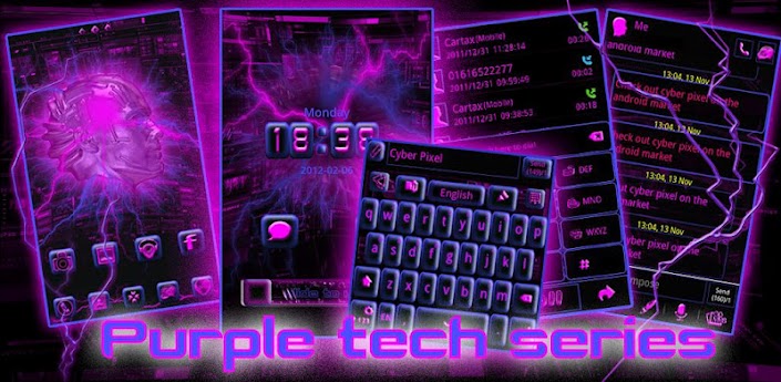 Overview: Here we have a techno, future style Purple Tech GO Launcher EX APK 1.1 theme.